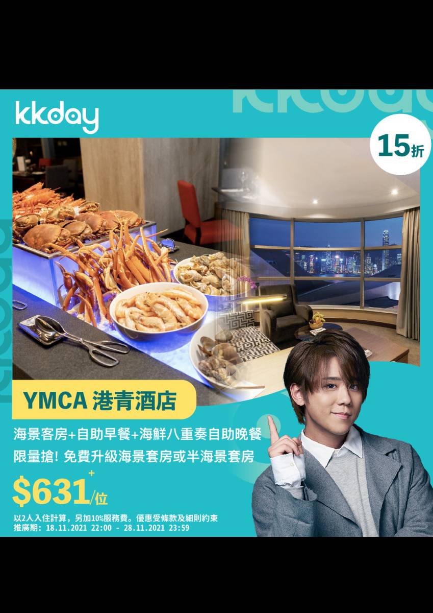【🇭🇰香港|KKday 7 周年玩樂優惠!港青酒店 YMCA 快閃優惠 低至15折! $1,388+/晚 住宿連自助早餐+自助晚餐!】 上次未夠一小時已經俾大家搶哂嘅YMCA 今晚10點再次出現喇!今次總共有超過300間套房俾大家搶😱😱 $1,388+/晚享住宿+自助早餐+再臨閣海鮮8重奏自助晚餐,無論邊個Staycation交流谷對YMCA海鮮8重奏自助晚餐都有讚無彈🥰🥰 試完海鮮8重奏自助晚餐,仲可以試試新野 - Mall Café芝士火鍋啱哂冬天Staycayion!仲有....平安夜除夕限定 - BBQ海鮮自助晚餐!睇定要咩package 準時10點搶!手快有手慢無! 【海鮮盛宴之旅】海景雙床房連海鮮八重奏自助晚餐、自助早餐 ☑️海景雙床房間 ☑️再臨閣海鮮八重奏自助晚餐 ☑️再臨閣自助早餐 🌟生日禮遇 🌟迎賓果籃 🌟免費加床 📅優惠日期:11月18日 22:00 - 11月27日 23:59 📅入住日期:12月1日 - 2021年1月30日 🎊KKday7周年玩樂大優惠👉🏻bit.ly/旅遊玩樂新角度 #KKday #KKday香港 #香港 #KKday7周年玩樂優惠 #玩精啲玩盡啲就係KKday #BetterAndMore ---- 🥰新任客服大使姜濤提提你❤️售前服務熱線:3008-1724 🍴美食推介低至49折👉🏻bit.ly/美食優惠 🏨Staycation 港酒店低至26折👉🏻bit.ly/StaycationHK2020