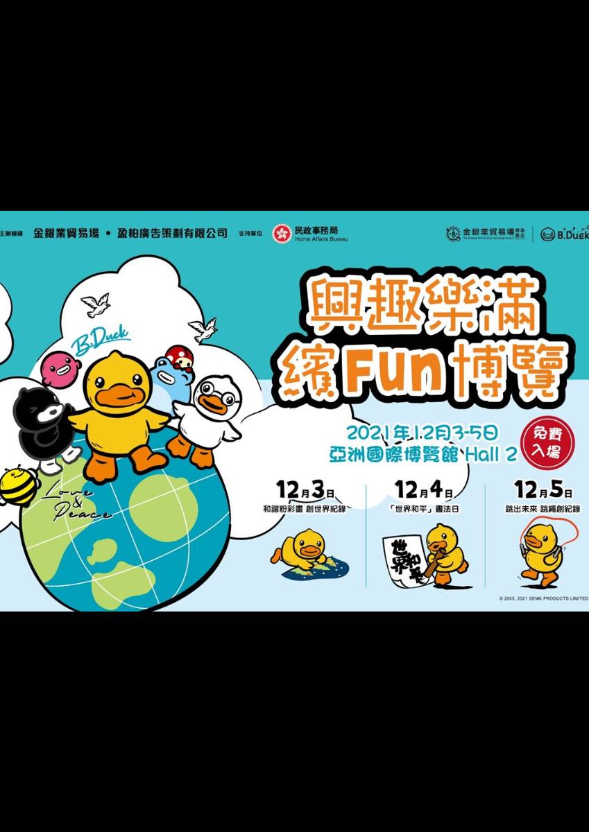金銀業貿易場 及 盈柏廣告策劃有限公司主辦: 金銀業貿易場為慶祝110周年,首次舉辦全港首個大型匯聚坊間各式各樣興趣班的博覽會。一連三日的「興趣樂滿繽FUN博覽」佔地八萬平方尺,參展興趣班教室包括手工精品、身心靈減壓、家居小擺設、文化藝術等等,適合各年齡層市民親身免費體驗不同的興趣班。 現場有過百種興趣班任你玩任你試,有文青必試的手工蠟燭、禪繞、博擊健身、頌缽聲頻浴,銀髮族熱愛的書法繪畫、盆景製作,以及專為小朋友而設的記憶力訓練、兒童粵劇、體育競技、舞獅文化、親子廚藝、粵劇藝術等等。
