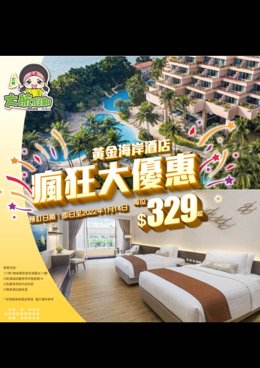 價格:1月每位$329起 2月每位$329起 3月每位$449起 新年年初一至初五(2月1-5日) 每位$899起 預訂日期:即日至2022年1月14日 入住日期:2022年1-3月<價格只供參考 一切以報價為準> 套票包括: 1)1間1晚綠景致客房連露台(1樓)<雙床房&>連無線上網 2)聆渢咖啡廳享用早餐套餐*# 3)免費享用房內迷你吧 4)尊享酒店健身室
