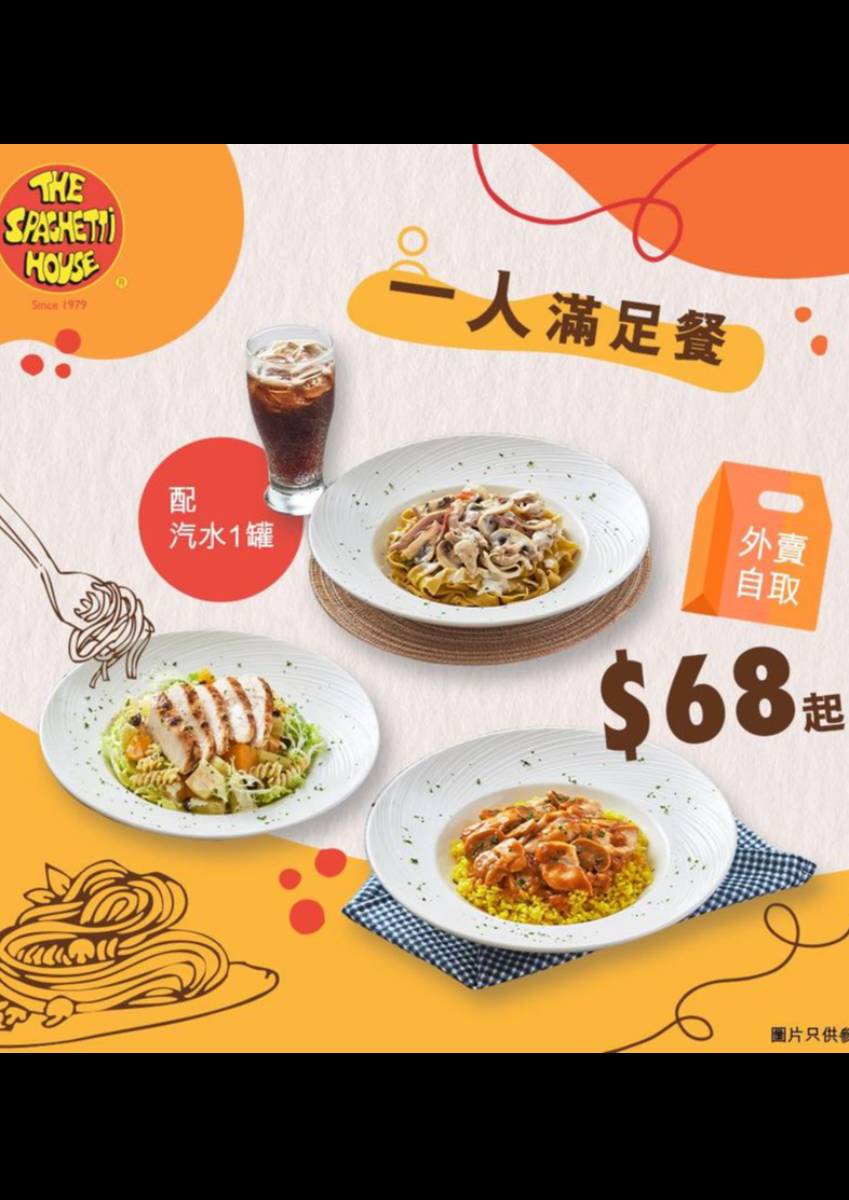 「一人滿足餐」$68起 (配汽水1罐),有多款選擇包括意粉、飯、沙律及Pizza,