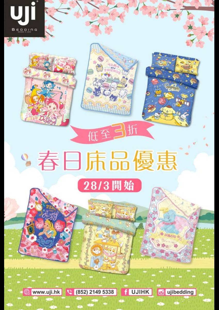UJI 春日床品優惠 精選卡通床品系列低至3折發售 包括小魔女Doremi, CK老鼠, 布甸狗, Hello Kitty等