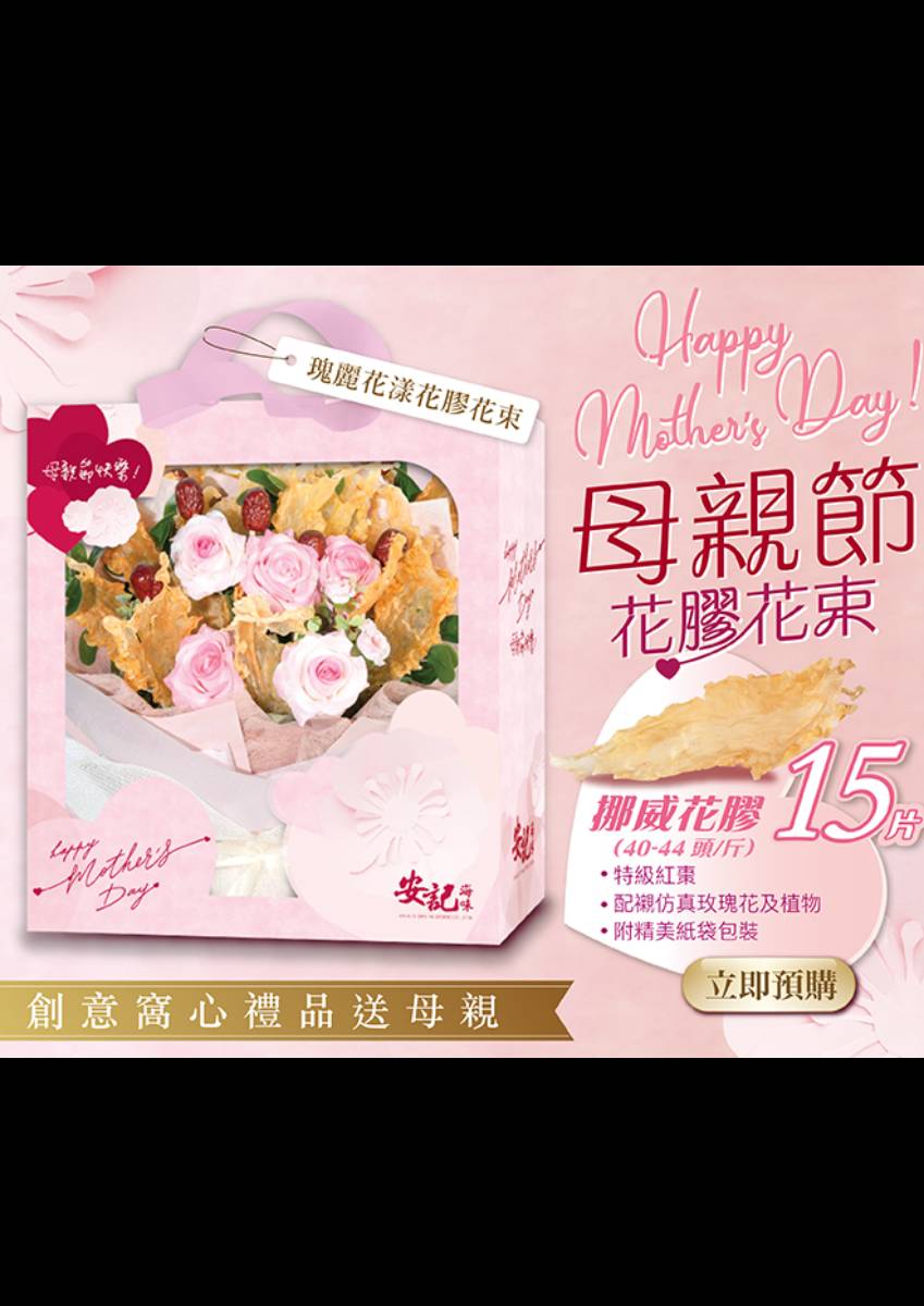 【母親節2022 - 母親節禮物+大餐推介】 下個月就係母親節啦「買咩禮物?」「同媽媽食咩好野?」母親節兩大難題又黎啦雖然近期疫情放緩但未必個個都會選擇外出,而且都係唔好鬆懈,小心為上啦!安記海味今年繼續有母親節產品—滋補花膠花束 同 母親節海味菜式,幫大家一次過解決同媽媽慶祝嘅兩大難題! 除左感謝自己媽媽男士們千祈唔好漏左同樣身為媽媽既另一半同另一半既媽媽啊!一次過買3束滋補花膠花束 仲送您 安記溏心鮑魚(3隻裝) 1盒留返比自己又得母親節加餸都得24/4/2022前訂購仲有早鳥優惠! 詳情請點擊連結!