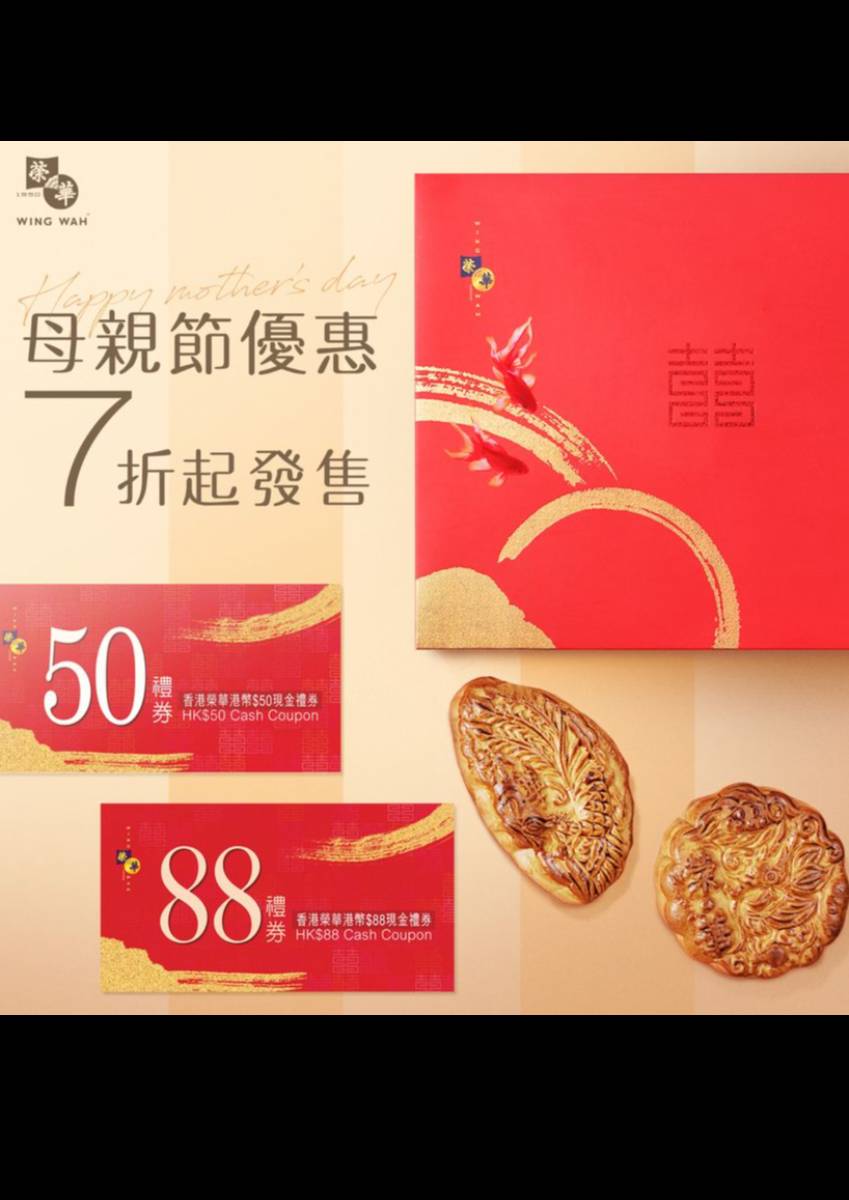 結婚唔止係兩個人嘅事,更係兩家人嘅事!透過囍餅,將新婚嘅喜悅傳開去! 榮華推出母親節限時禮餅券優惠,即日起至5月12日,到榮華電子禮券網上平台購買多款榮華禮券及貨品,都以7折起限量發售! 優惠組合: 1. $50禮券 (5張/套) 團購價$175 (標準價$250) 2. $88禮券 (5張/套) 團購價$308 (標準價$440) 3. 豬腳薑醋(現貨) 團購價$57 (標準價$69) 4. 囍榮華(六個裝囍餅)禮券 (5張/套) 團購價$572 (標準價$715) 5. 富榮華(四個裝囍餅)禮券 (5張/套) 團購價$412 (標準價$515) 6. 禮榮華(精裝四囍囍餅)禮券 (5張/套) 團購價$348 (標準價$435) 單一訂單買滿折實價$2000,再送你$50禮券兩張,多買多送!捉緊限時優惠機會 詳情請點擊連結!