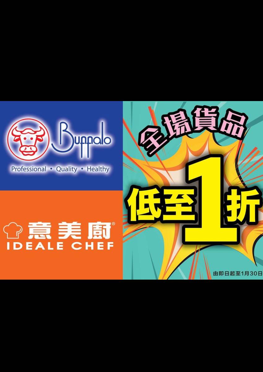 即日起至1月30日,全場貨品低至1折!! 黎到第二個星期嘅開倉,有全新嘅至抵限日限售產品! 牛頭牌不銹鋼雞骨剪,原價$238,限售價$45~ 意美廚韓國製造24CM陶瓷易潔雙耳煲,原價$1,098,限售價$299~ 意美廚小麥秸杆廚房砧板,原價$104,限售價$20~ TUXTON 0.5公升316不銹鋼手柄真空杯,原價$268,限售價$59~ 地址: 九龍觀塘偉業街221號美德工業中心地鋪 (觀塘站B1出口) 營業時間: 10:00 - 19:30 *優惠受條款約束,詳情可向職員查詢。