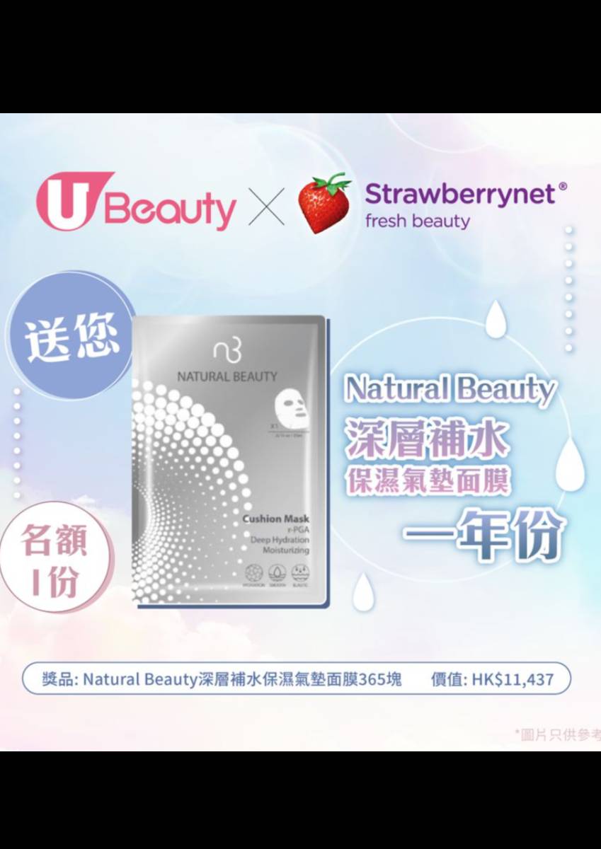 立即讚好 U Beauty 及 Strawberrynet Hong Kong Facebook專頁再入U Lifestyle App《會員活動》專區登記,即有機會獲得~立即參加啦! 活動日期: 即日起至2022年3月30日晚上11時59分止 獎品:Natural Beauty深層補水保濕氣墊面膜365塊 價值:HK$11,437 名額:1個 詳情請點擊結連!
